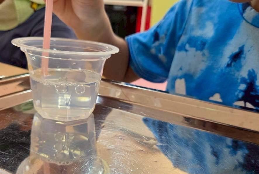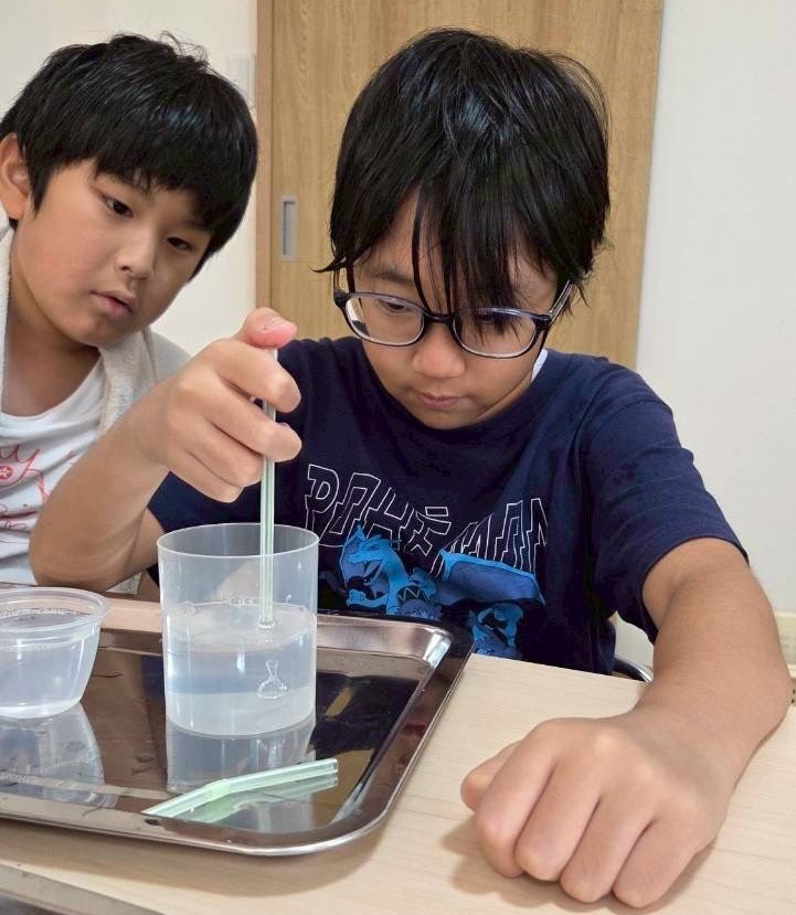 「ストローが細い方がいいのかな~?」と芽生えた探究心から新しい方法で実験し、得られた成果を比較していました。