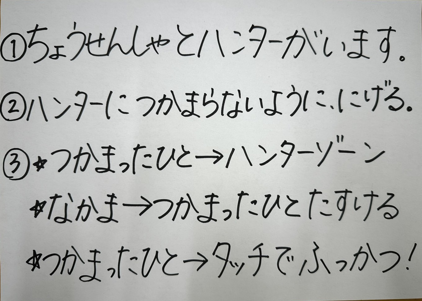 ある日、「ハンター鬼ごっこやろうよ!」と子どもから提案がありました。