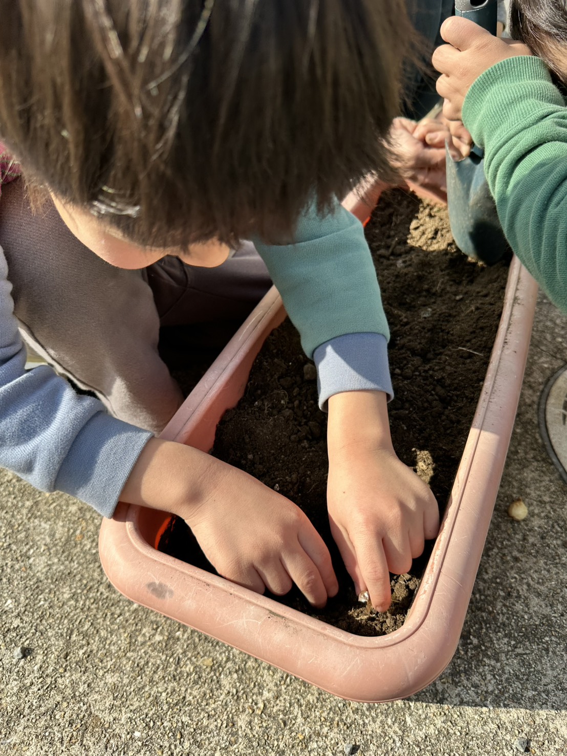 春に向けて、子どもたちと一緒にチューリップとムスカリの球根を植えました!!