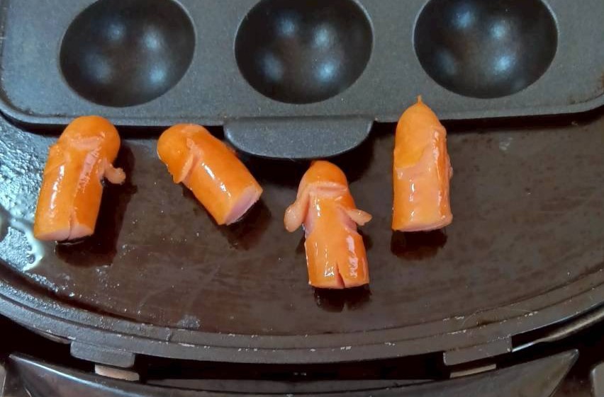 その頃、鉄板では宇宙人ウインナーたちが踊りながらみんなを待っていました😊