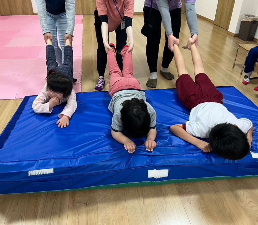 ニュース 2023/05/27 「さぁ、抜けるかな?」 マットにうつ伏せで寝転び、大根に変身! 「よし、この大根を抜こう!」 「絶対に抜く!」 「抜かれるもんか!」 名勝負が繰り広げられました。 「さぁ、次はどの大根が抜けるかな?」