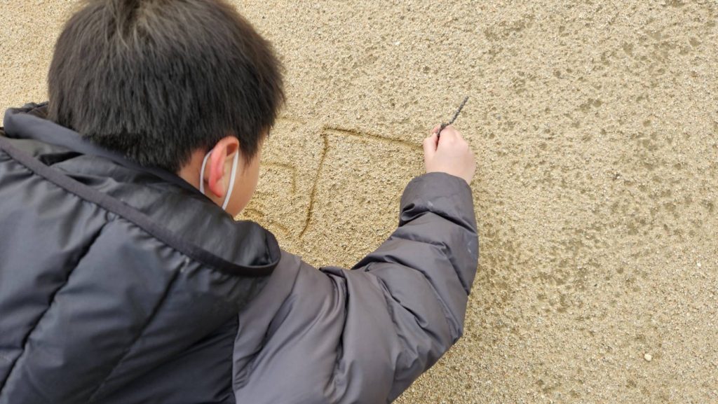 ニュース 2024/03/01 大自然の芸術家たち パレットには絵や文字を書くことが大好きな子どもたちがいます。 公園で遊んでいた時に枝を見つけると… 「見て!出来た!」 ↑「この絵はなぁに?」 と聞いてみると… 「これは、ドラえもん!」 と教えてくれました。 「これは…バイキンマンとメロンパンナちゃんかな?」 自然で出来る芸術はとても魅力的です。 次回はどのような芸術が見られるのか楽しみです。
