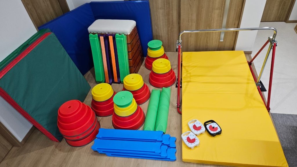 この度、公益財団法人やまぶき財団様より、サーキットや跳び箱、マット、鉄棒などの運動遊具とタイムタイマーの寄付をしていただきました。
