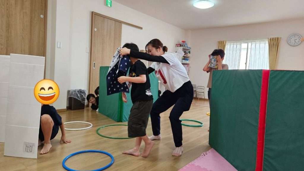ニュース 2024/09/17 ハラハラドキドキ 子どもたちに人気の「だるまさんが転んだ」を少しアレンジしてみました☺ 「だるまさんが転んだ」のルールに加えて、マットやタオルなどを使ってかくれんぼをしたり、フープを使って落とし穴を作ったりしてみました。 子どもたちの反応はいかに!? 「だーるまさんが…」 「ころんだ!!」 みんな、隠れるの上手です☺ ハラハラドキドキのだるまさんが転んだ、みなさんもぜひ試してみてはいかがでしょうか?