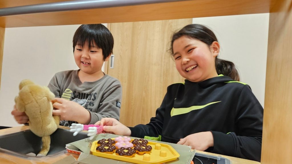 ニュース 2025/02/18 ドーナツ屋さんオープン🍩 ある日パレットでドーナツ屋さんがオープンしました✨ ドキドキしながらお客さんを待ちます。 お客さんがやってきたようです。 店員さんは笑顔でお出迎えしてました☺ オーダーしたドーナツが運ばれ… 「いただきまーす!!」 お味はもちろん、「おいしかった!」と大好評でした✨ ドーナツ屋さんは毎日元気いっぱいにお店を開いてます☺🍩