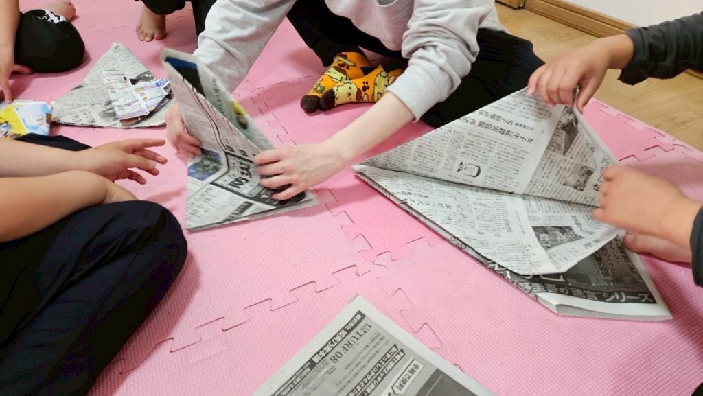 今回は子どもたちにヒットした紙鉄砲と紙飛行機を楽しんでいる様子をお届けします😊