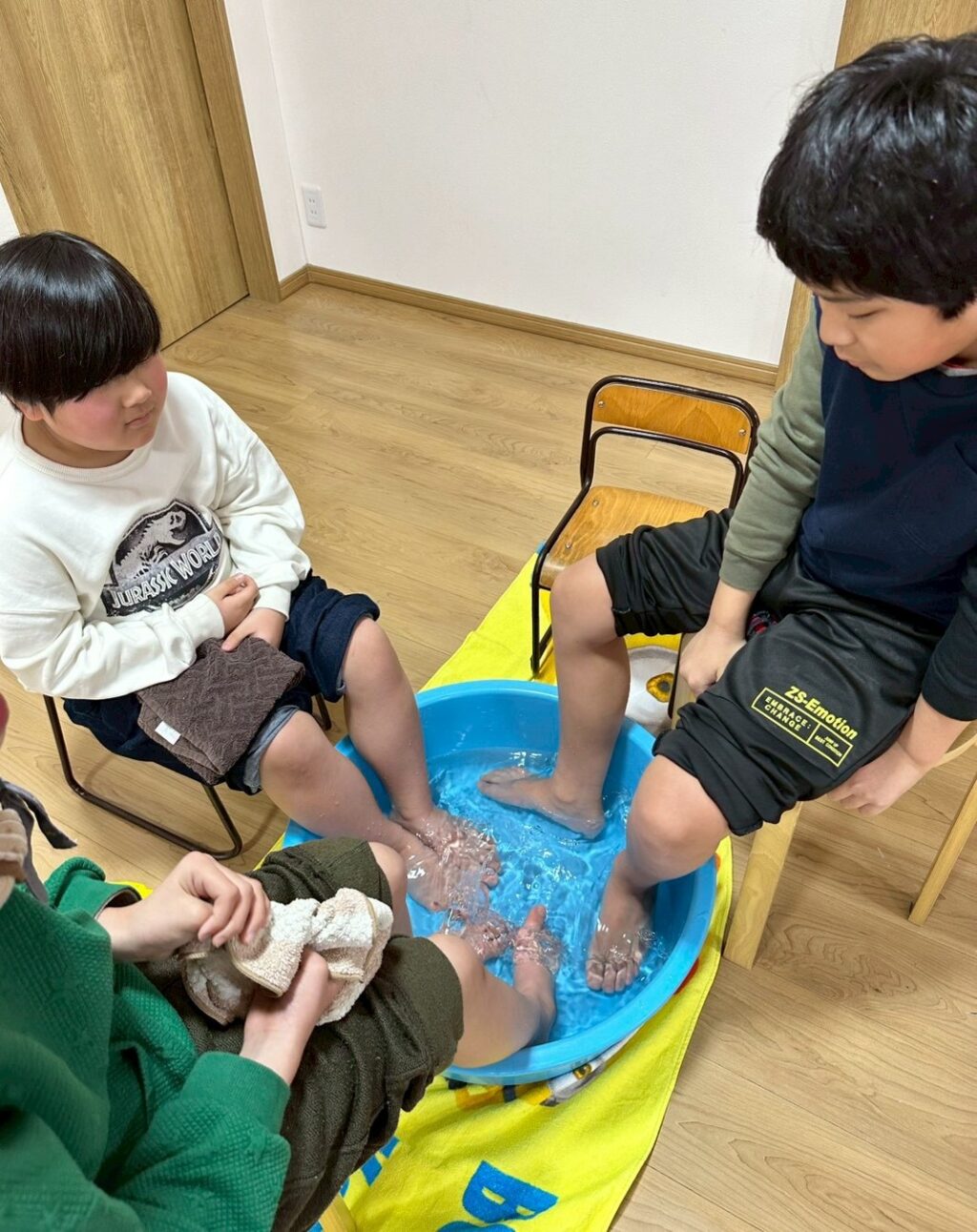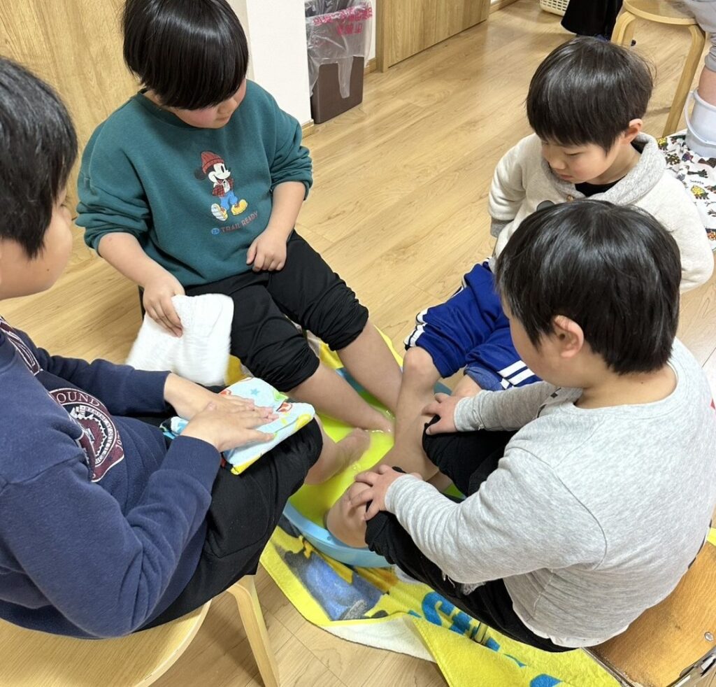 子どもたちからは、「足湯⁉やったー!」「今日も足湯ある?」「手湯もしたい!」と大好評でした😊